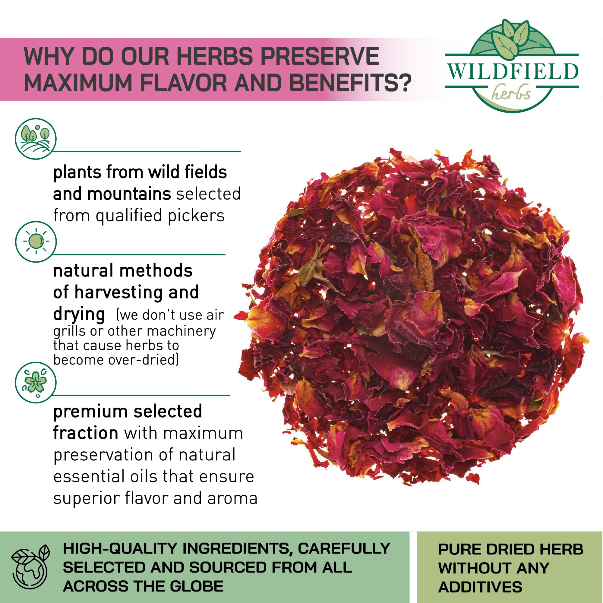 Active Ingredients of Dry Rose Petals : Rosa rubiginosa - 100%. Dry Rose Petals Herbal Tea are steeped in hot water to create a rich tea. This tea is believed to have good properties. Region of origin of Rose Petals Dried Herb Tea: Europe.